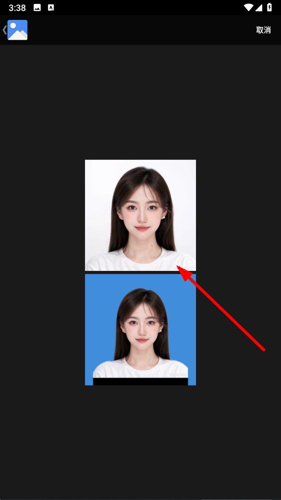 1、照片选取,智能证件照制作专家可自由选择本地相册照片,也可以使用APP自带的证件照相机。