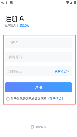 4、在注册页面,填写信息并勾选协议后,点击注册完成账号注册。