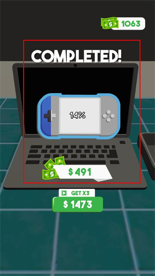 4、修复完成后显示COMPLETED界面,可获得491美元奖励,也可选择获取三倍奖励1473美元。
