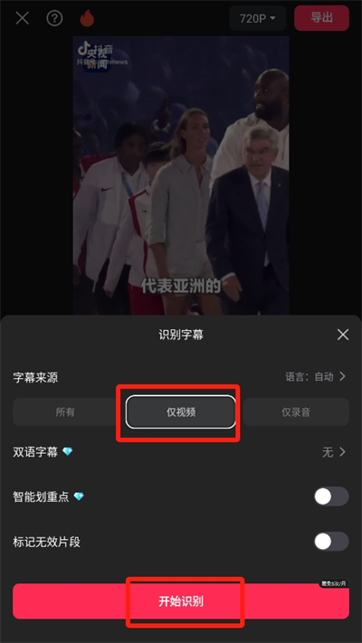 3、然后我们选择字幕的来源为仅视频,然后根据个人的选择可以选择更多的选项;