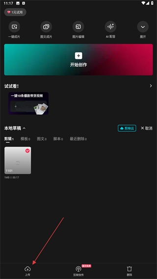 剪映怎么上传素材