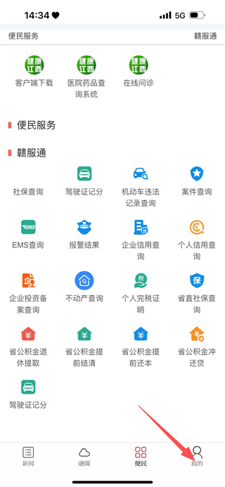 2、在便民收到页面,点击底部我的,返回个人中心页面。