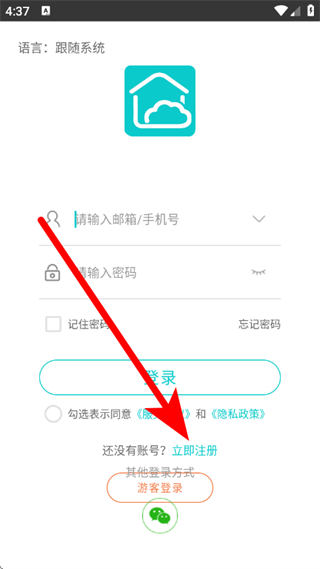 2、在登录页面,点击立即注册,进入账号注册界面。