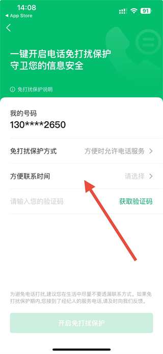 4、在免打扰设置页面,设置免打扰保护方式、方便联系时间等信息,即可开启免打扰模式设置。