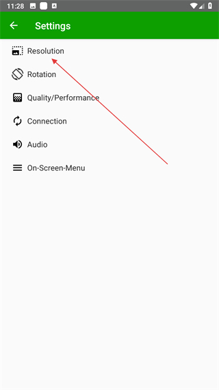 3、在设置页面,点击Resolution选项,即可进入该页面。