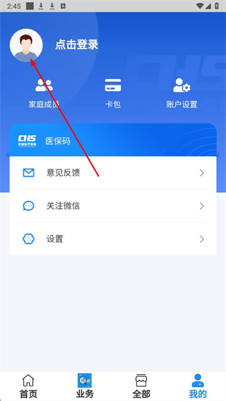 2、在我的页面点击头像区域,进入账户登录页面。