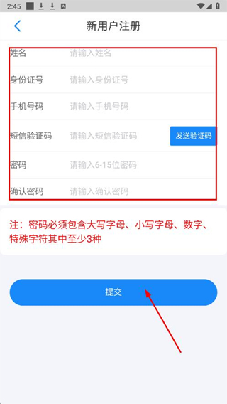 5、填写信息,写完成后点击提交按钮,完成账号注册流程。