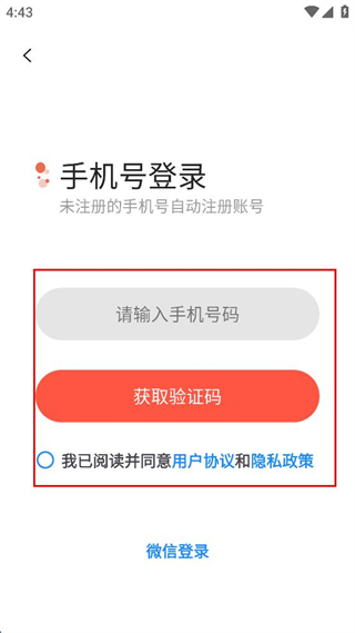 3、在手机号登录页面,找到手机号码输入框,准备填写常用号码并获取验证码。