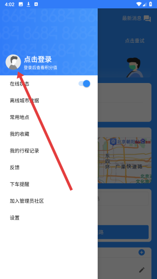 1、可以点击8684实时公交首页左上方按钮,展开侧边栏查看更多功能。