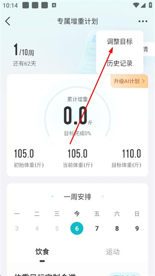 2、在今日页面点击查看详情,进入专属增重计划页面。
