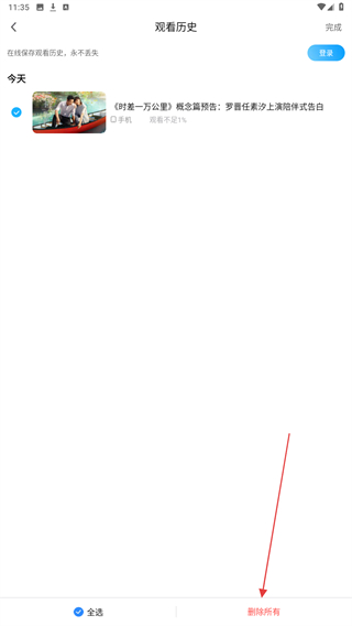 4、勾选要删除的视频内容后,点击下方删除所有的按钮即可。