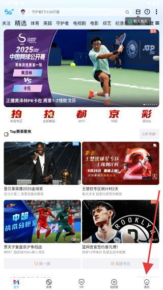 1、打开咪咕视频APP,在首页内点击右下角我的图标。