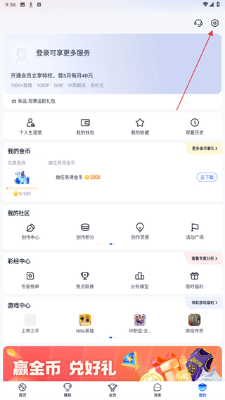 1、启动腾讯体育应用,在首页底部点击我的按钮。