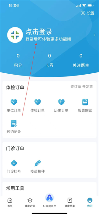 1、打开和谐医疗App的首页,点击底部的我的选项,进入个人中心页面。