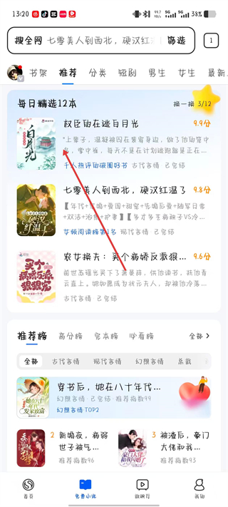 2、在免费小说页面,选择一本想要加入书架的小说并点击。