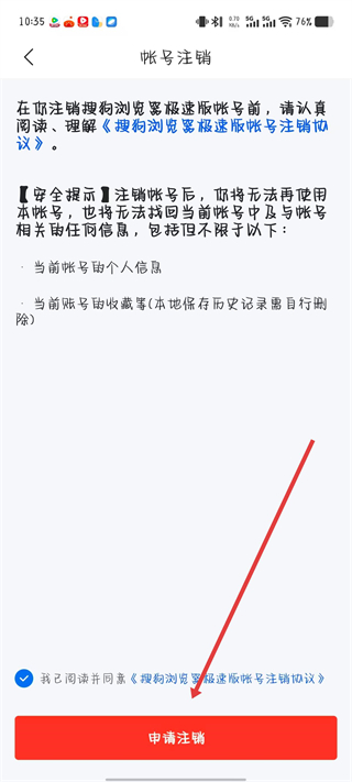 4、在账号注销页面,点击申请注销按钮即可。