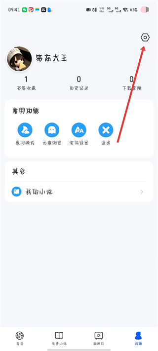 2、在个人功能页面右上角,找到设置图标并点击,进入浏览器的设置界面。