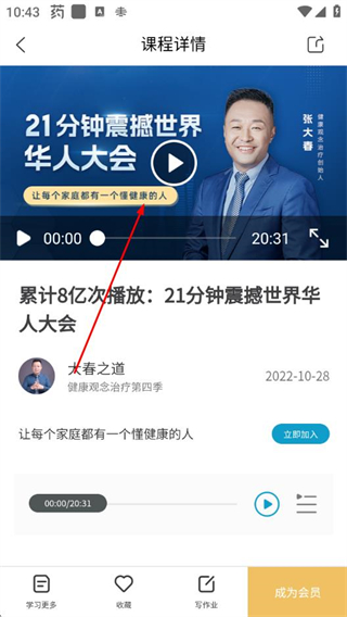 3、在课程详情页面点击播放按钮,即可开始收听该课程。