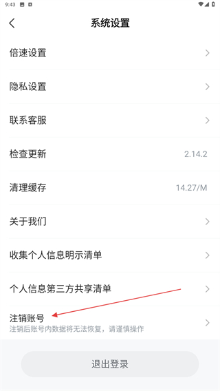 3、在系统设置的界面内,点击最下方注销账号的按钮。