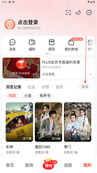 2、进入个人中心的页面内,点击浏览记录右侧编辑的按钮。