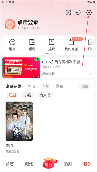 2、进入我的页面内,点击右上角设置的功能按钮。
