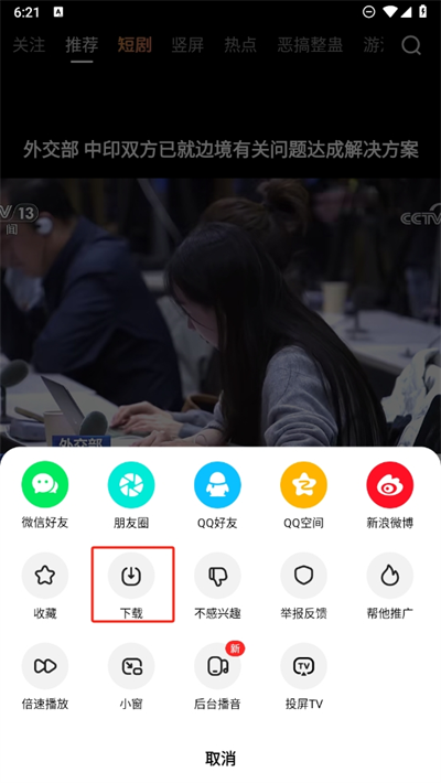 3、遇到想要保存的短视频,大家可以在分享这里进入找到下载功能进行视频的保存;
