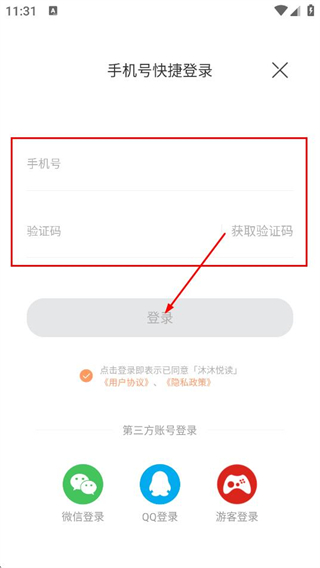 3、在登录页面,输入手机号填写验证码后,再点击登录,完成账号登录操作。