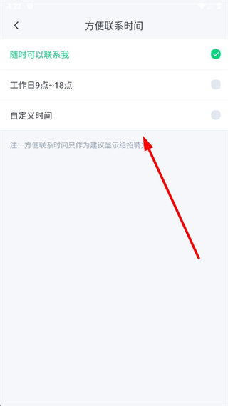 4、在方便联系时间页面,选择想要设置的联系时间,即可完成设置。