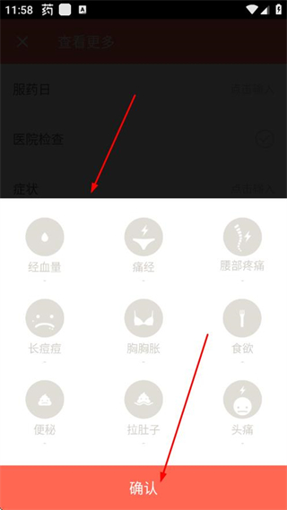 4、,选择对应的经期症状,点击保存,完成经期症状的记录。