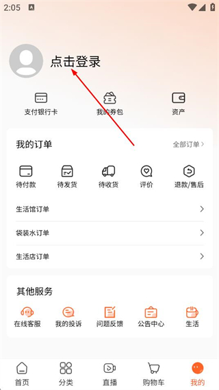 2、随后我们可以在我的页面,点击点击登录,进入登录页面。