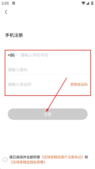 全球家精选app怎么注册账号和密码