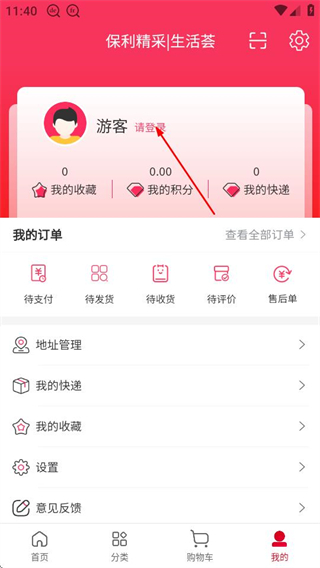 2、在个人中心页面,点击请登录区域,进入登录页面。
