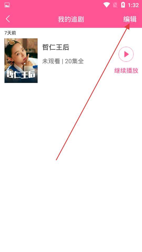 2、进入我的观看记录页面后,点击右上角的编辑选项,进入追剧记录编辑模式。