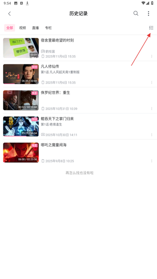 3、进入历史记录的界面内,再次点击右侧编辑的功能按钮。