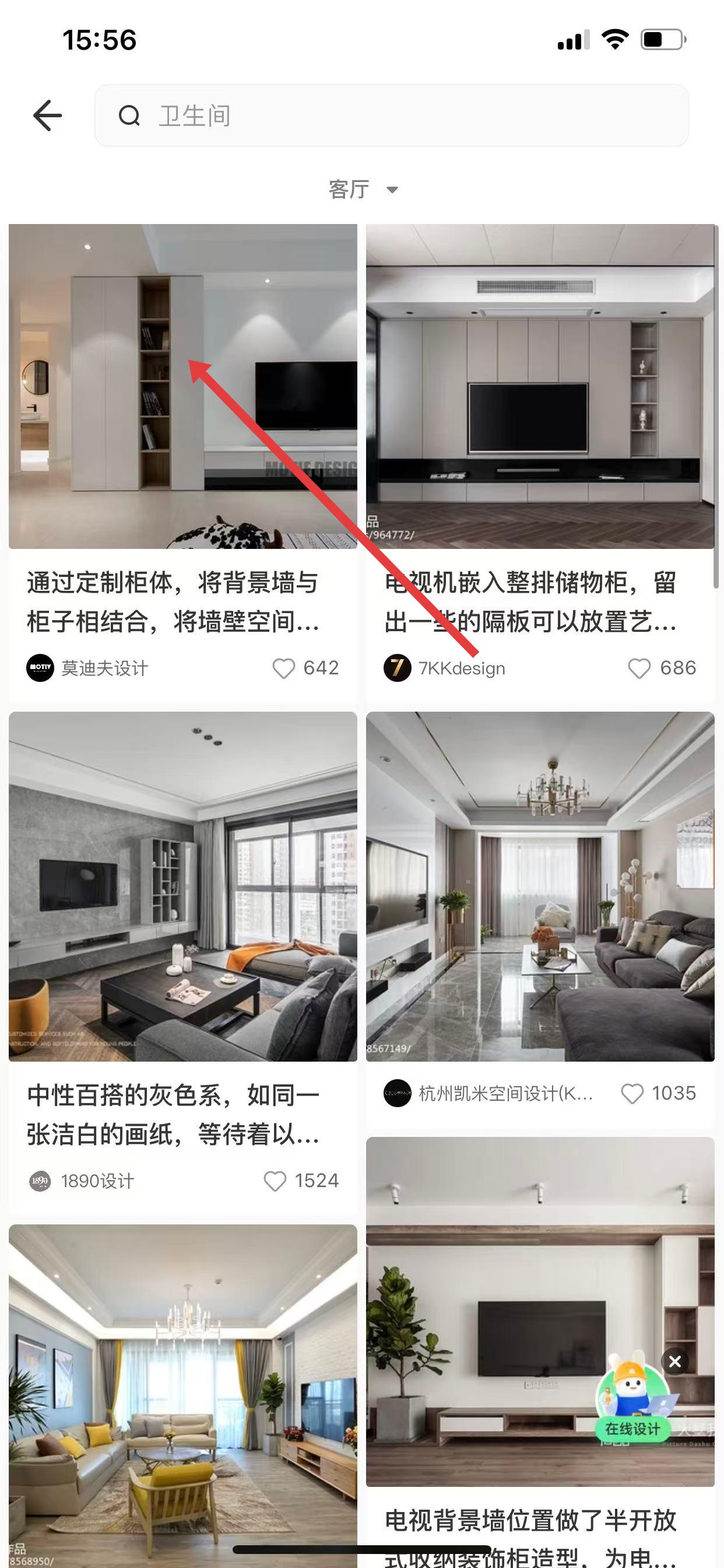 3、筛选后,页面会展示符合条件的装修效果图,点击您感兴趣的效果图。