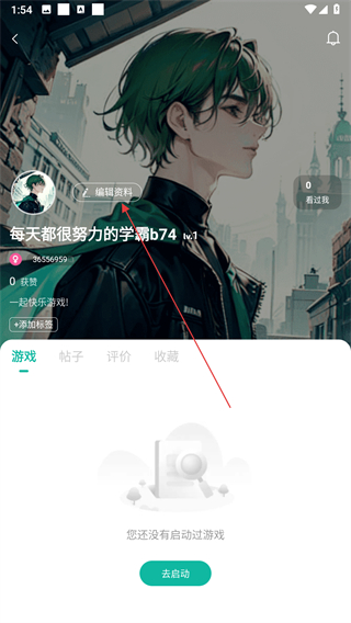 2、在个人主页,点击编辑资料选项,进入编辑个人信息页面。