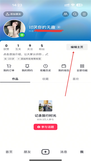 2、在个人主页内,点击画面右侧编辑主页的功能按钮。
