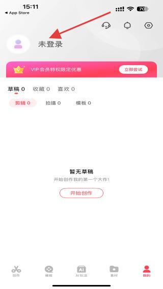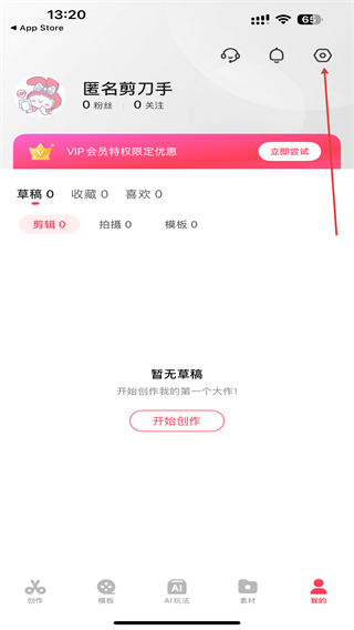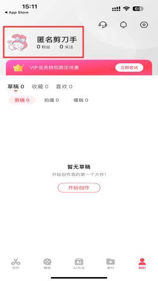 1、打开快剪APP,进入到首页内,点击底部导航栏的我的。
