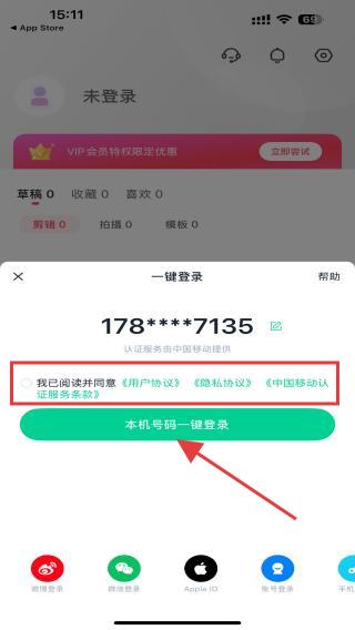 3、在弹出的登录界面中,勾选我已阅读并同意用户协议、隐私协议等相关协议,再点击本机号一键登录的功能按钮。