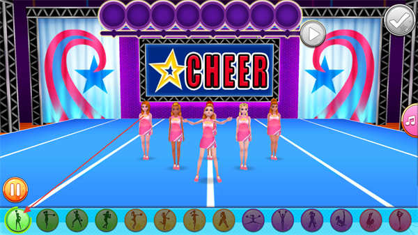 3、点击亮起的动作按钮,让啦啦队完成对应舞蹈动作,积累进度。