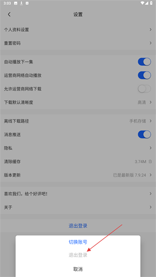 4、在下方弹出的提示,点击退出登录的按钮即可完成。