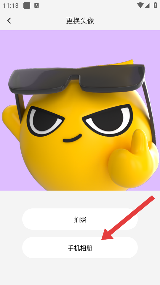 2、在更换头像的页面,点击手机相册的选项,进入手机相册选择图片。