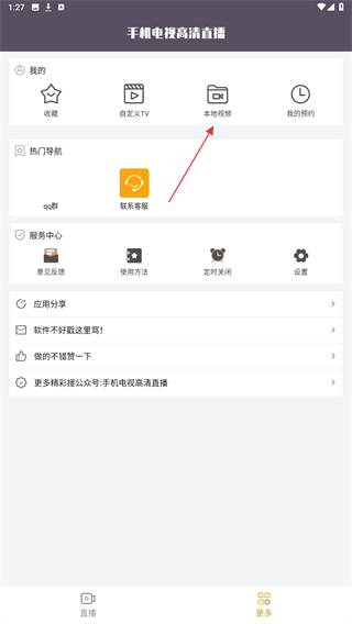 1、启动手机电视高清直播APP,进入时点击底部更多的图标。
