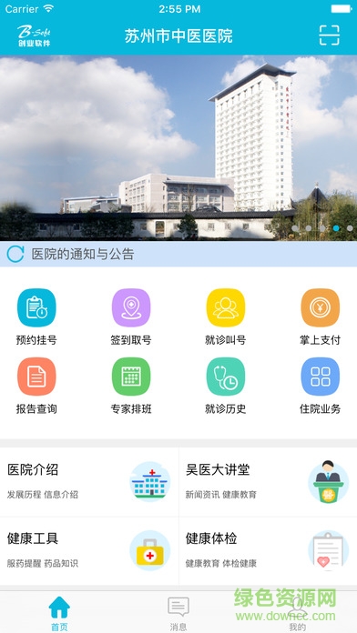苏州市中医医院智慧医院App可以随时随地享受“预约挂号、签到取号、排队叫号、掌上支付、报告查询、专家排班、就诊历史、住院业务”等业务功能。
