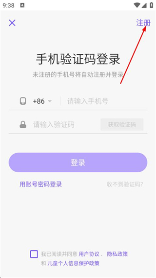 4、勾选协议,输入手机号,获取并输入验证码后,点击注册。