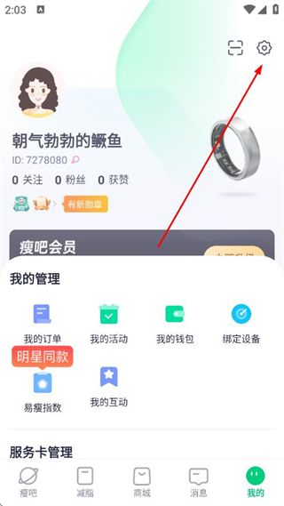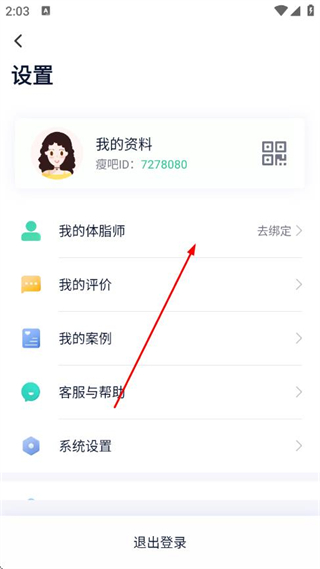 3、在设置页面,点击我的体脂师,进入绑定体脂师页面。