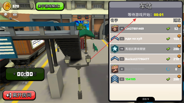 1、在车站房间等待游戏开始,查看匹配列表,准备进入对局。