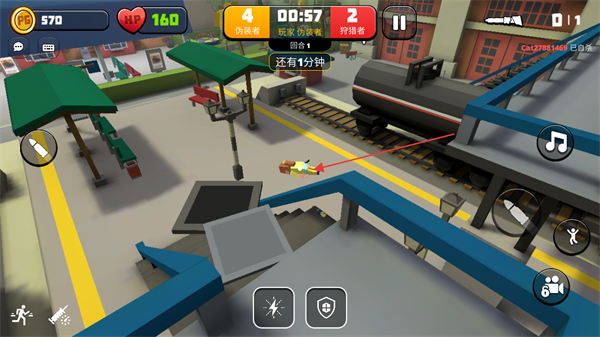 3、阵营切换灵活,玩家可自由选择躲藏或狩猎玩法,既能体验伪装潜伏的紧张感,也能享受主动追击的爽快感,单局耗时适中,适配碎片化娱乐场景。