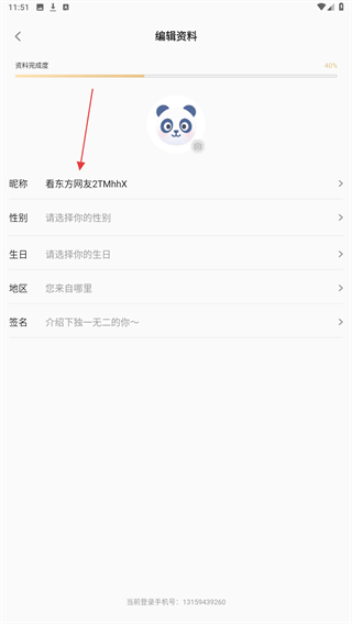3、进入编辑资料的界面内,再次点击昵称的区域。