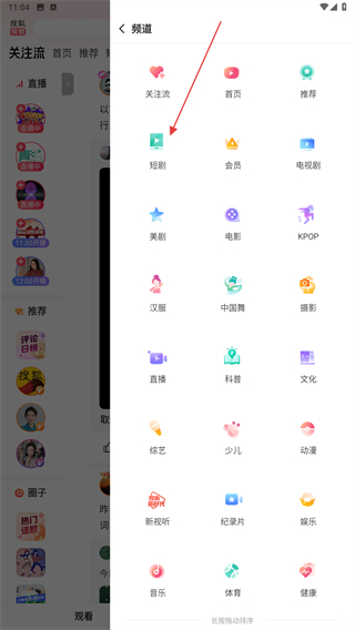 2、在右侧的菜单栏中,用户需点击短剧的按钮。
